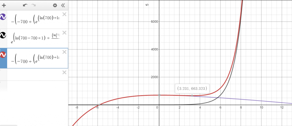 CT(t) = -\left(-700+\left(e^{\left(\ln\left(700\right)+\ln\left(0.5\right)\cdot t\cdot\frac{2}{5}\right)}-700\right)+\left(700-e^{\left(\ln\left(700\right)+\ln\left(0.5\right)\cdot t\cdot\frac{2}{5}\right)}\right)\cdot\left(1+0.05\right)^{\left(x\right)}\right)+e^{\left(\ln\left(700-0+1\right)\ +\ \frac{\left(\ln\left(700\cdot\frac{1}{2}\right)-\ln\left(0.5\cdot\left(700-0+1\right)\right)\right)\cdot t}{7}\right)}